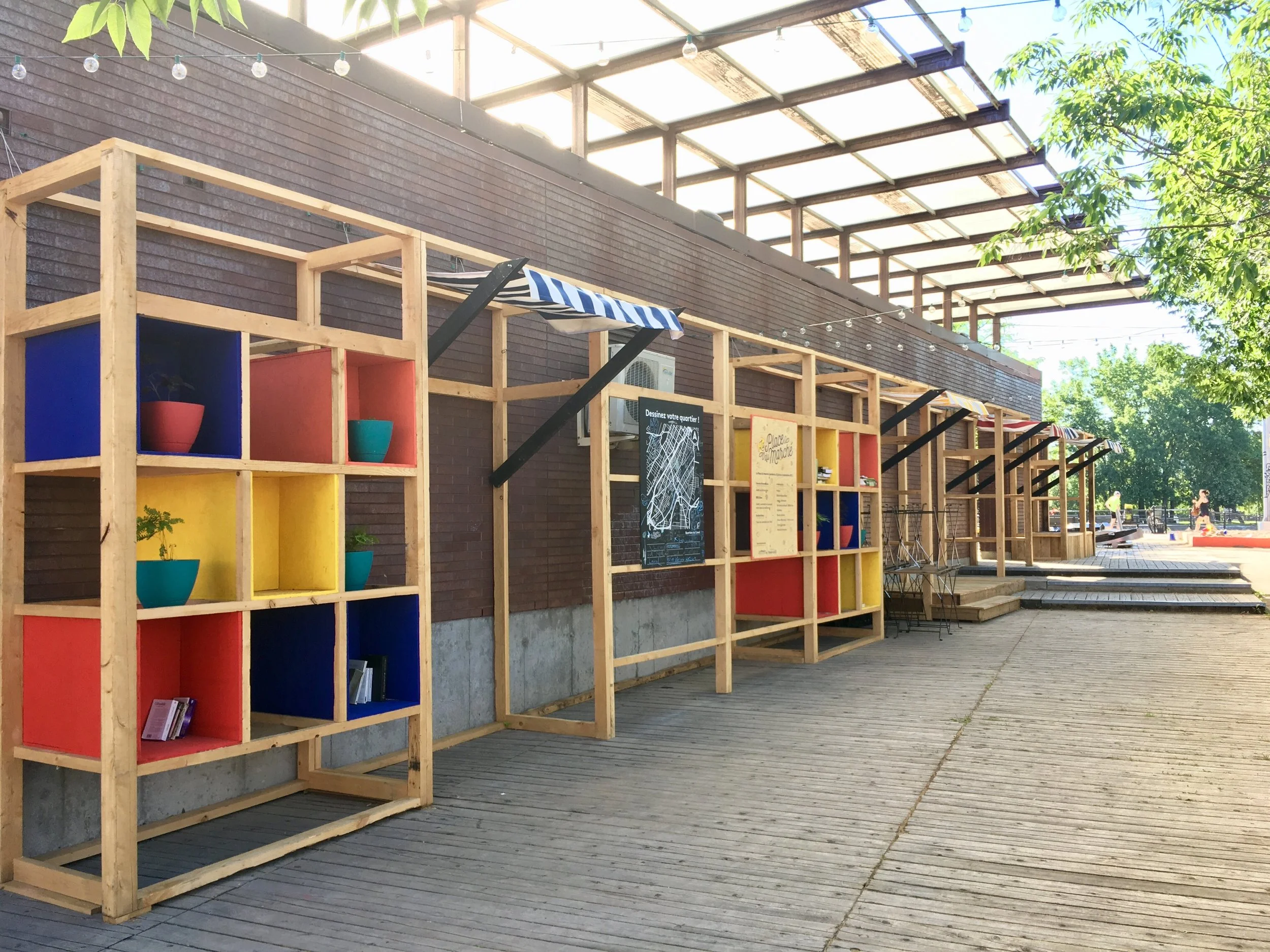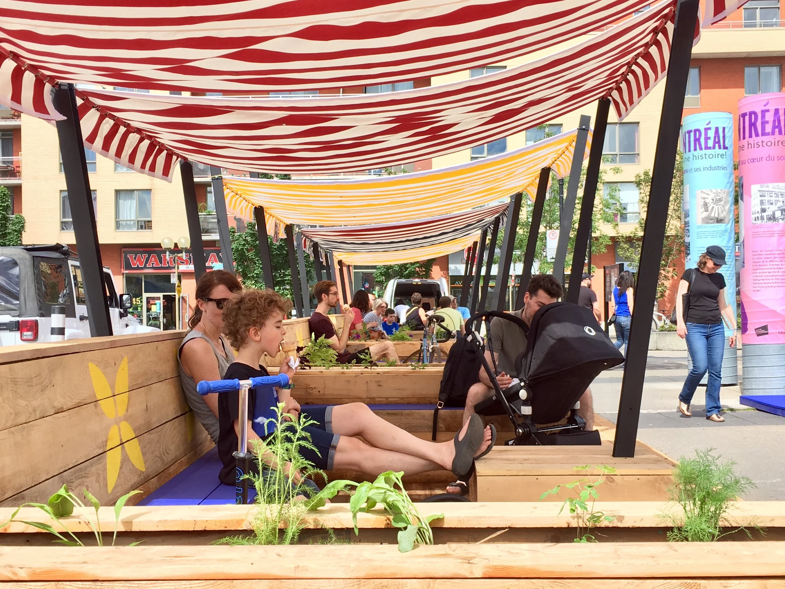 Mise en valeur de la rue St-Ambroise et l’espace sous-exploité entre le Marché Atwater et le Canal Lachine depuis 2017, réalisé dans le cadre du programme de Rues Piétonnes et partagées de la Ville de Montréal. Par l’aménagement de placottoirs aux tissus colorés, la mise en valeur de la terrasse et du bord du canal, La Pépinière a su recréer une place de quartier qui est devenu un lieu privilégié de rassemblement pour les locaux et les visiteurs.
