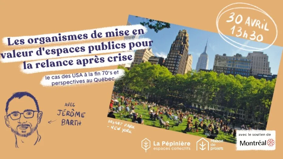 Comment créer des espaces publics plus vivants, coûtant moins cher aux municipalités et créant un grand nombre d'emplois? Le cas des USA dans les années 70 et perspectives au Québec.